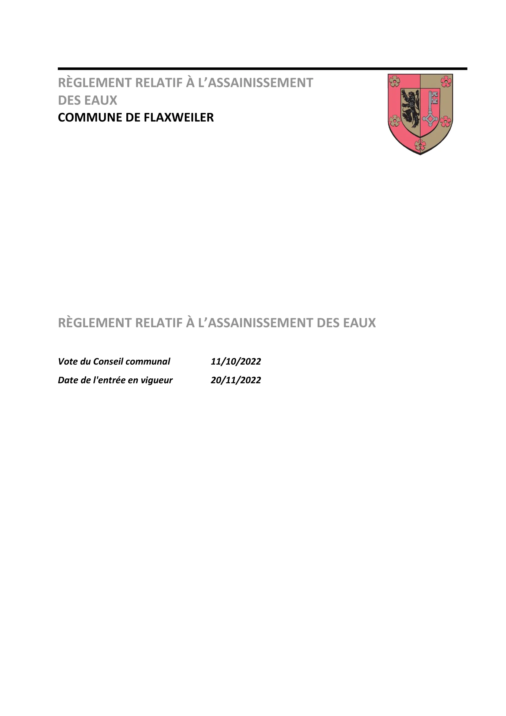 Règlement relatif à l’assainissement des eaux