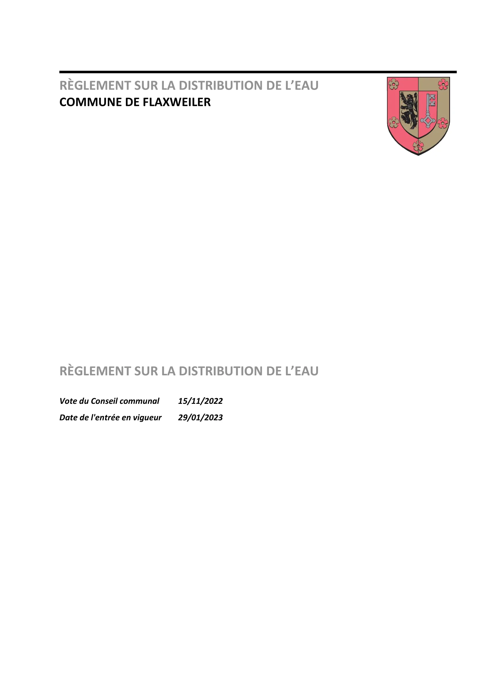 Règlement sur la distribution de l’eau