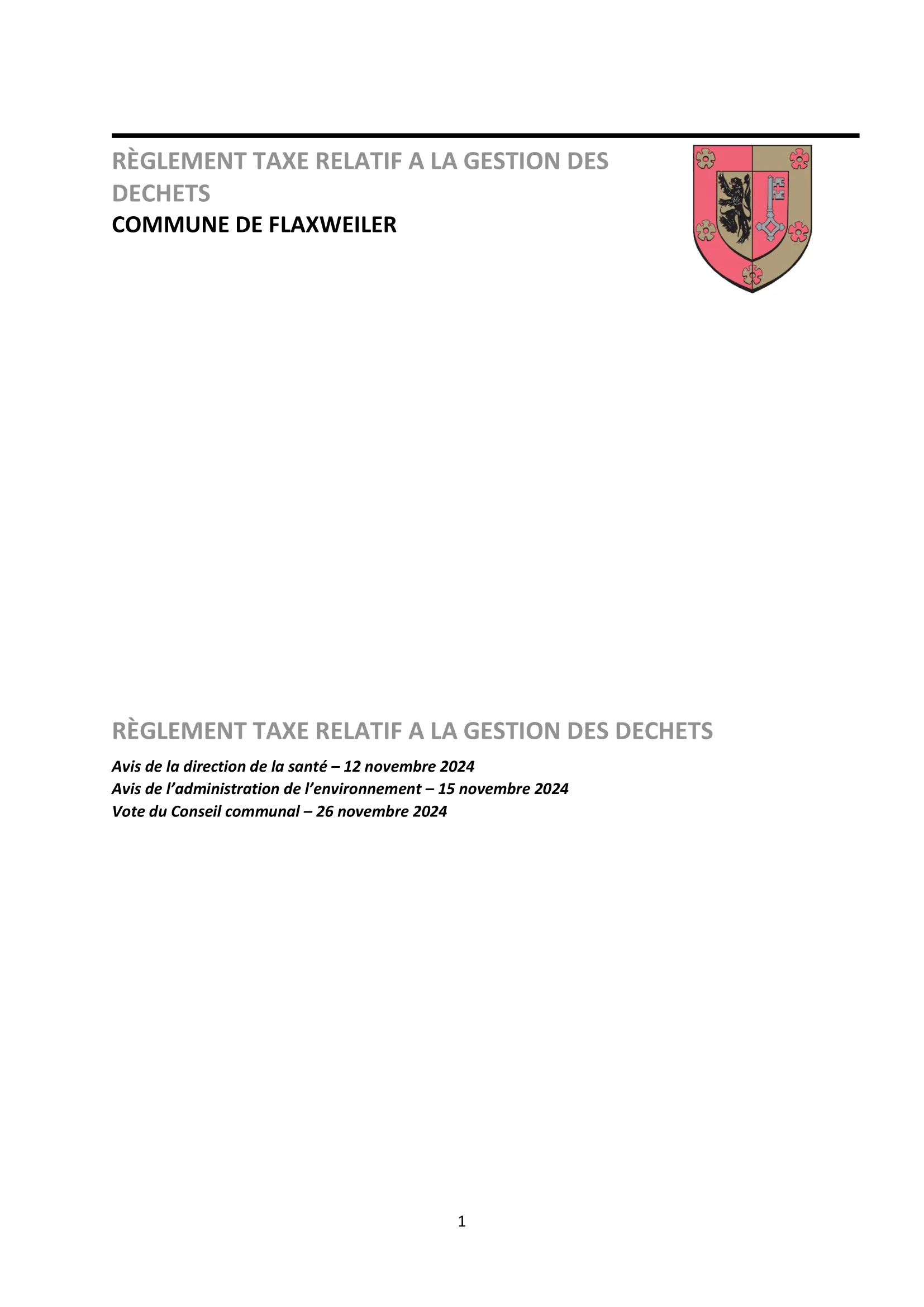 Règlement taxe relatif à la gestion des déchets